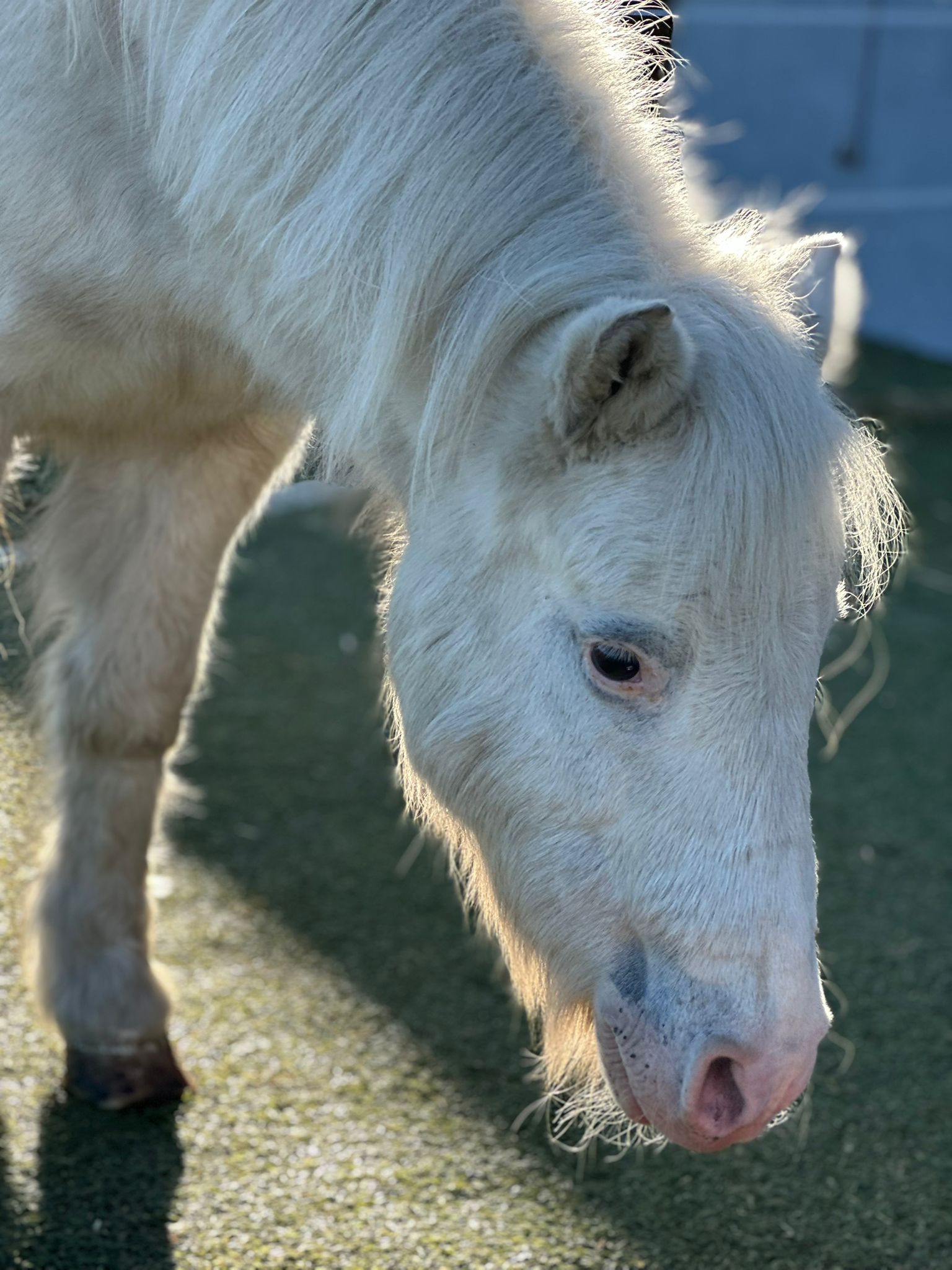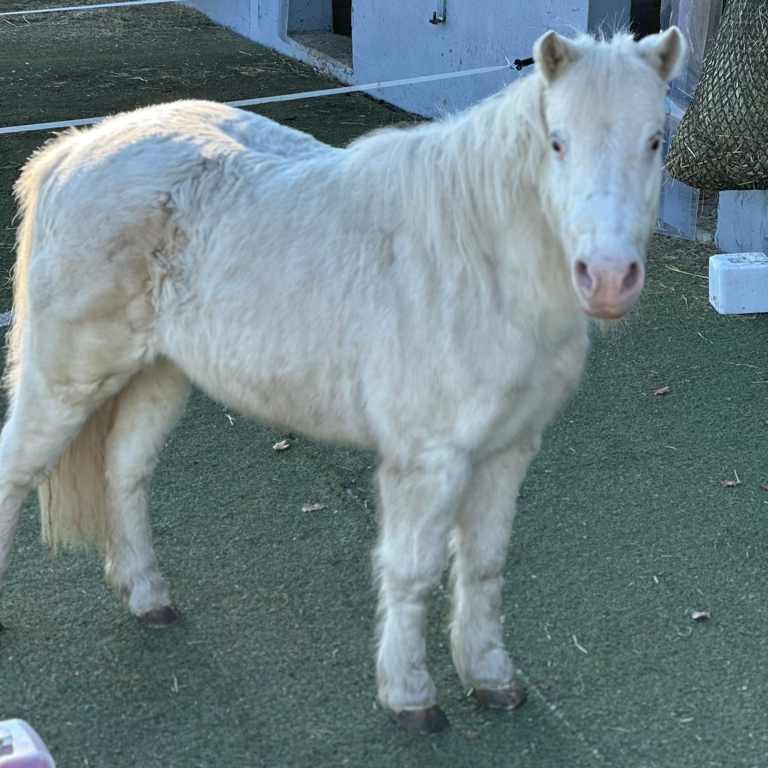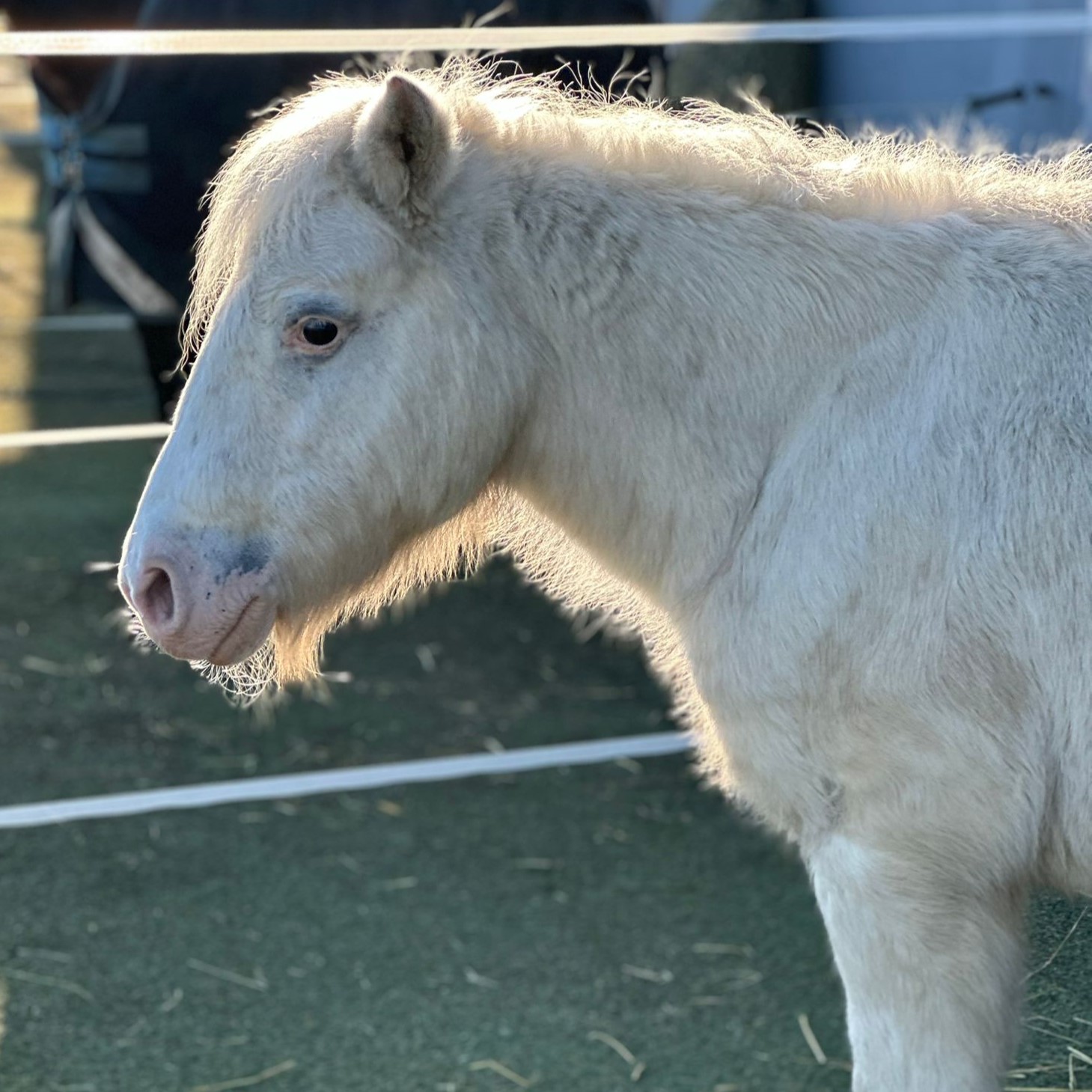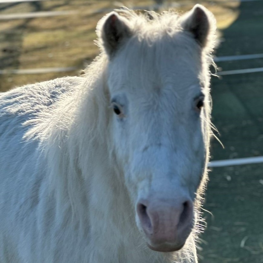 Snowflake ist wunderschön, ein Einhorn-Pony mit viel Ausdruck. Die kleine Stute zeigt sich in den ersten Tagen temperamentvoll und interessiert, aber bei Neuem leicht gestresst und im Kontakt mit fremden Menschen etwas schüchtern. Sie gewöhnt sich schnell an Abläufe und ist generell offen.